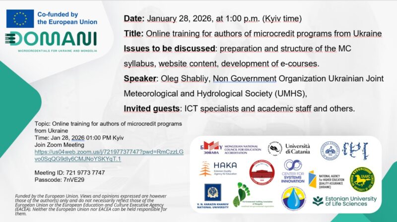 Онлайн-тренінг проєкту Ерасмус+ DOMNI для авторів Мікрокредитних програм в Україні