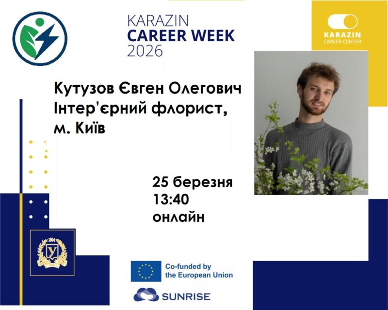 25 березня 2026 року о 13:40 у форматі відеоконференції (Zoom) відбудеться зустріч із Кутузовим Євгеном Олеговичем — інтер’єрним флористом.