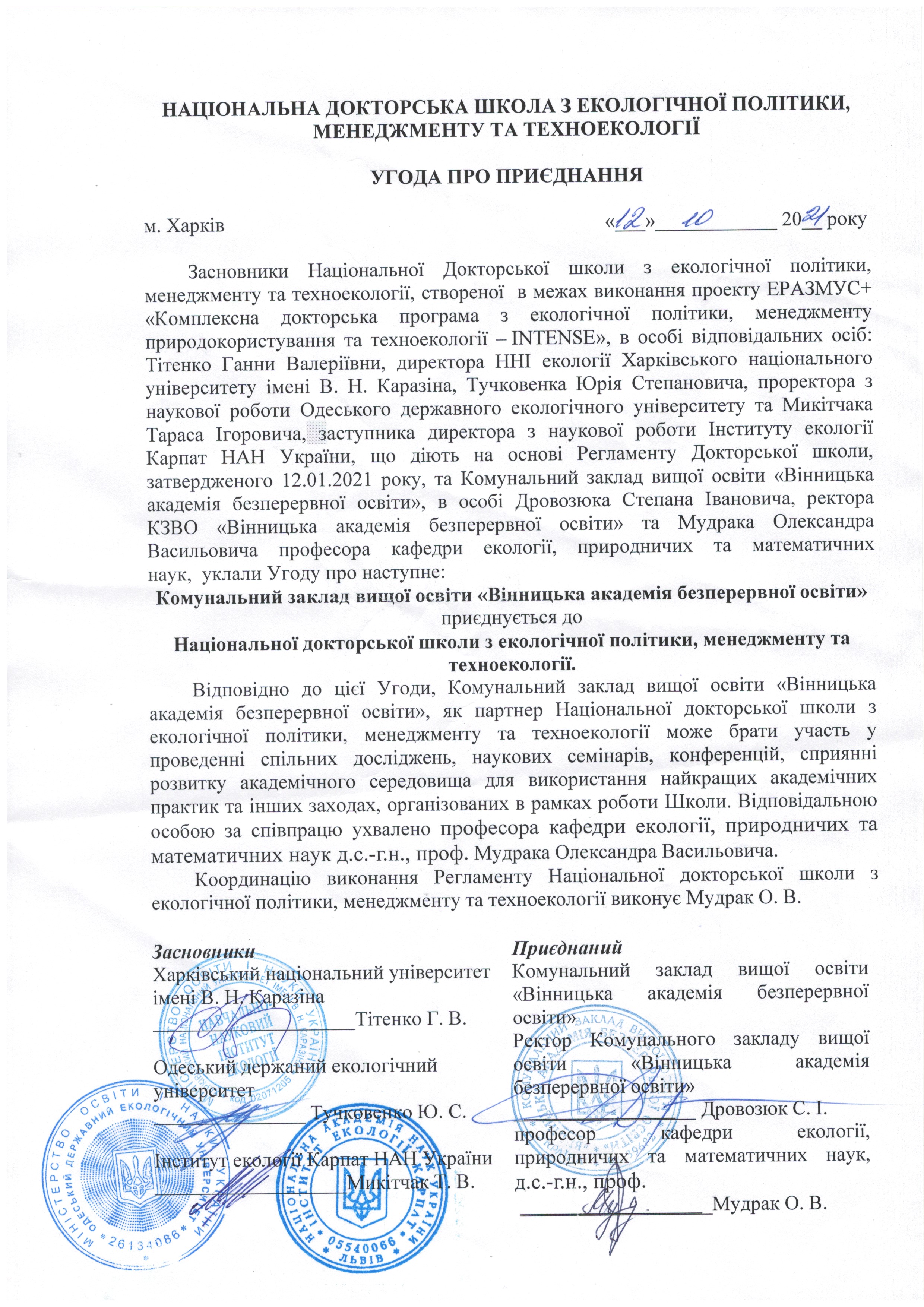 Мудрак Олександр Васильович – завідувач кафедри екології, природничих та математичних наук Комунальний заклад вищої освіти “Вінницька академія безперервної освіти”. Доктор сільськогосподарських наук (за спеціальністю 03.00.16 — екологія), професор, академік Академії Наук Вищої Школи України, член-кореспондент Міжнародної академії наук екології та безпеки життєдіяльності, академік Міжнародної академії культури безпеки, екології та здоров’я.