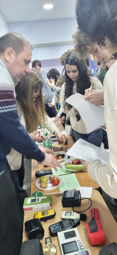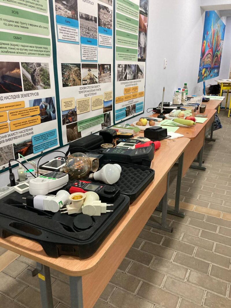 У форматі інтерактивних станцій учасники визначали pH, мінералізацію, електропровідність і вміст нітратів у воді, досліджували параметри ґрунту, проводили вимірювання температури, вологості, освітленості, рівня CO2, формальдегіду та пилу в приміщенні, а також працювали з приладами для оцінки тепловтрат, електромагнітного випромінювання, радіаційного фону та енергоощадності освітлення. Окрему увагу було приділено дослідженню якості харчових продуктів, зокрема визначенню нітратів в овочах і фруктах та роботі з цифровим мікроскопом.
