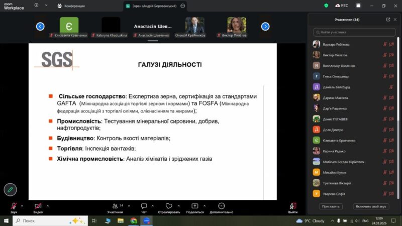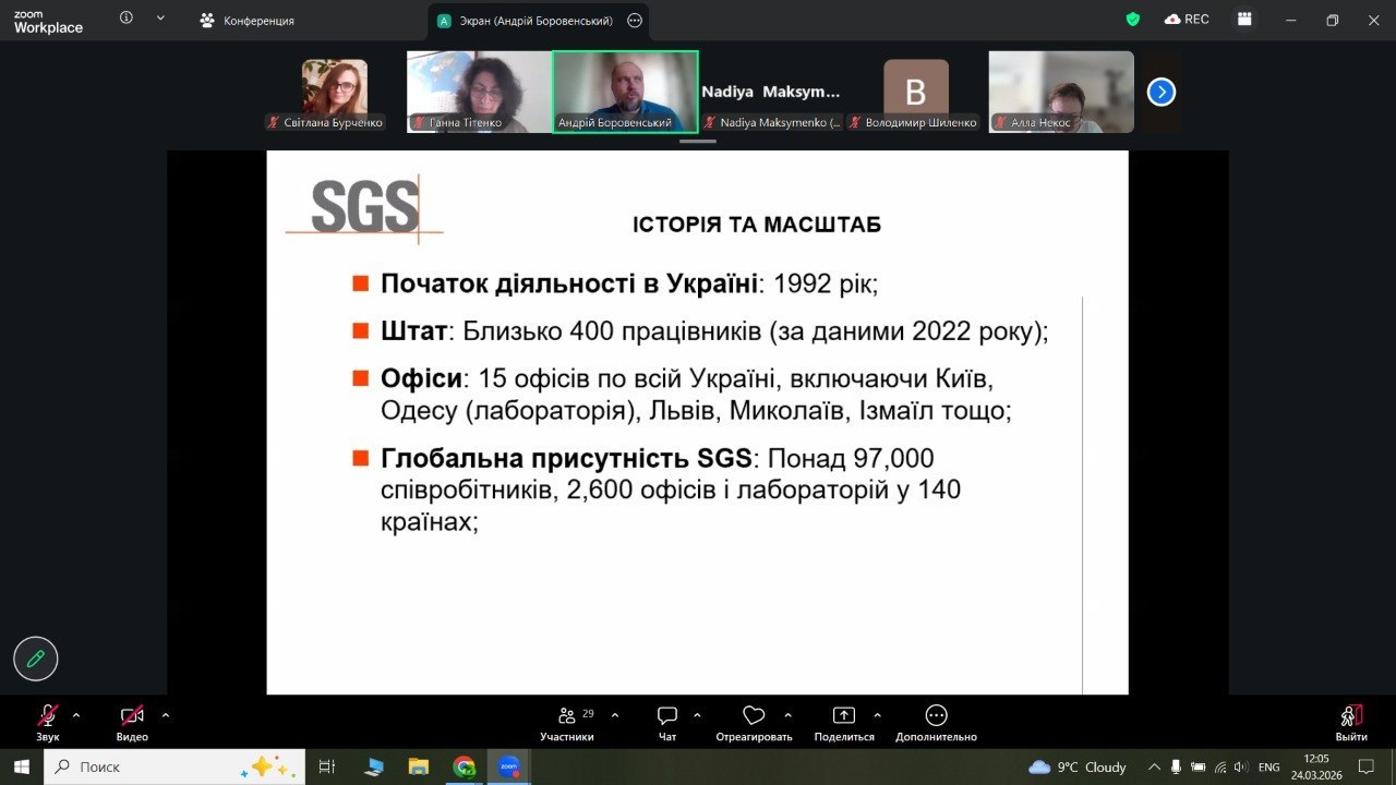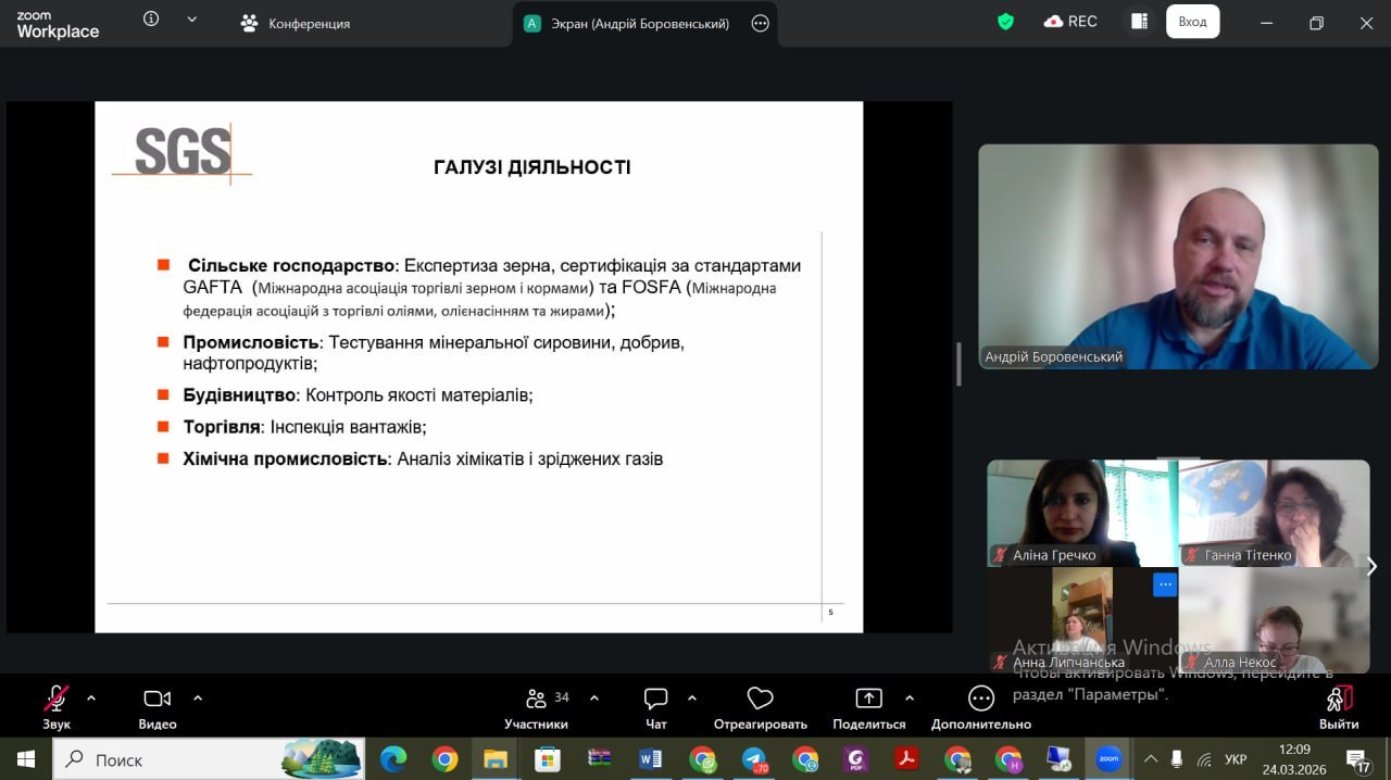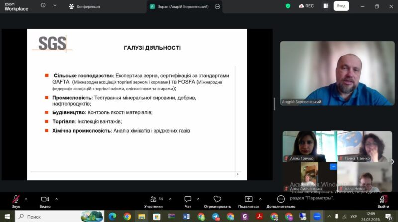 - 24 березня: Провідний аудитор компанії FE SGS Ukraine Андрій Боровенський ознайомив здобувачів освіти з міжнародними стандартами якості, системами екологічного менеджменту та процесом сертифікації в агропромисловому секторі.