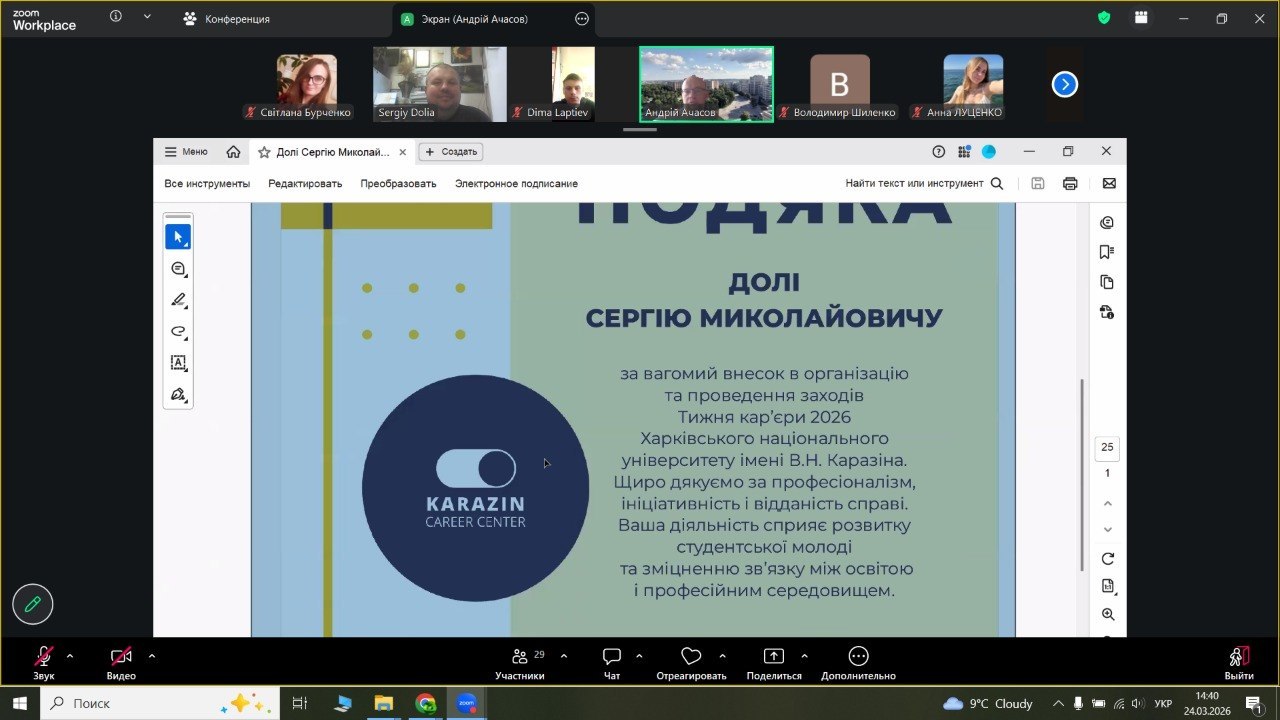 З 23 по 25 березня в Навчально-науковому інституті екології, зеленої енергетики та сталого розвитку відбулася низка зустрічей зі стейкхолдерами та експертами у межах Тижня кар’єри. Усі заходи проходили у дружній, зацікавленій та конструктивній атмосфері, що сприяло налагодженню взаємодії між студентством, наукою та бізнесом.