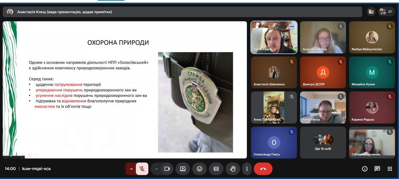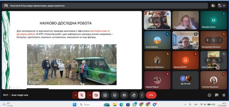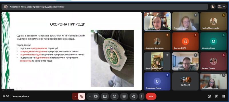 - 25 березня: В.о. начальника відділу еколого-освітньої роботи НПП «Голосіївський» Сергій Миколайович Хара розповів про функціонування національних парків, збереження біорізноманіття та організацію еколого-просвітницької роботи з молоддю.